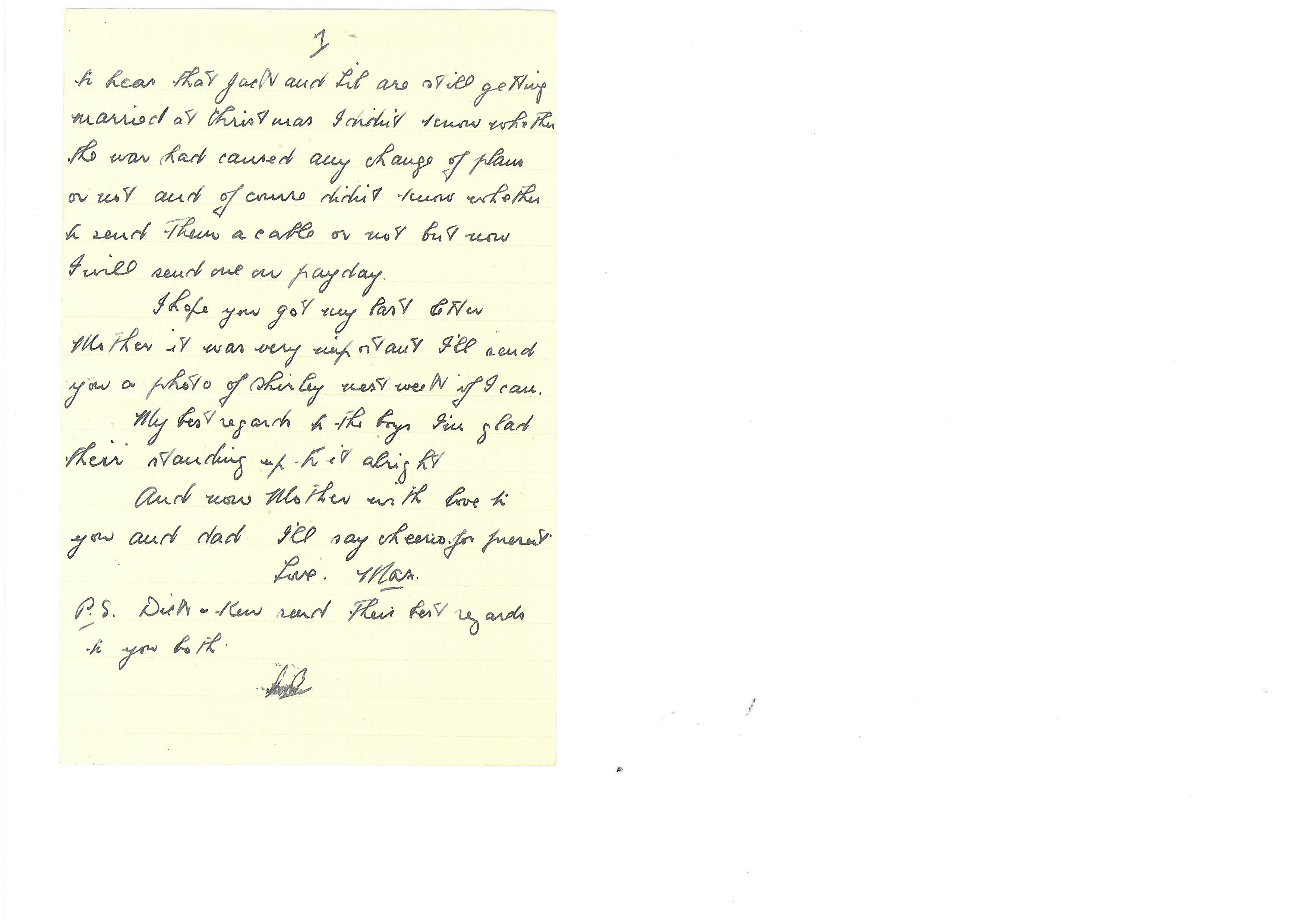 I hope you got my last letter mother it was very important. I’ll send you a photo of Shirley next week if I can.