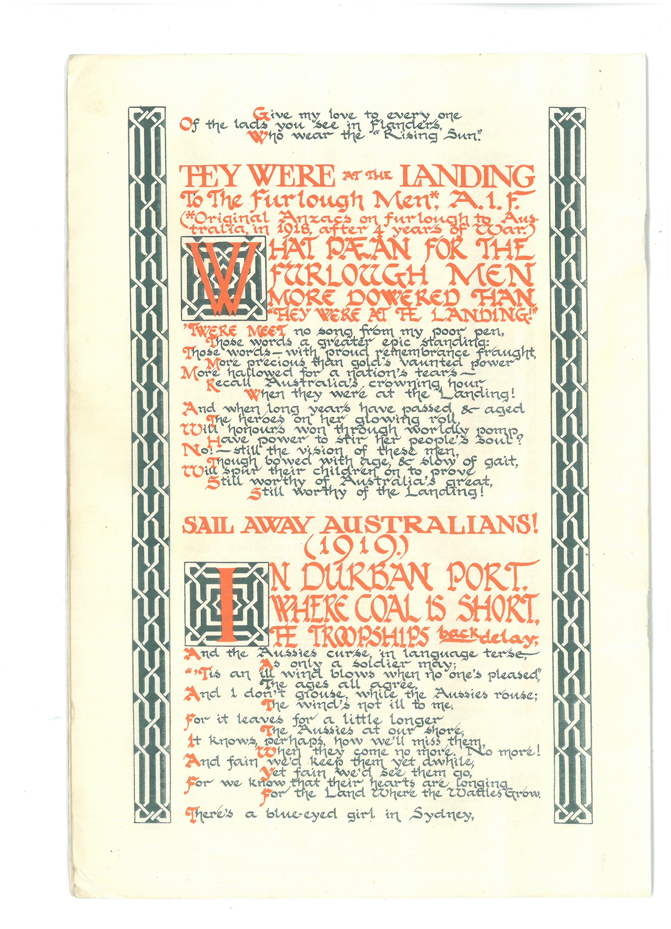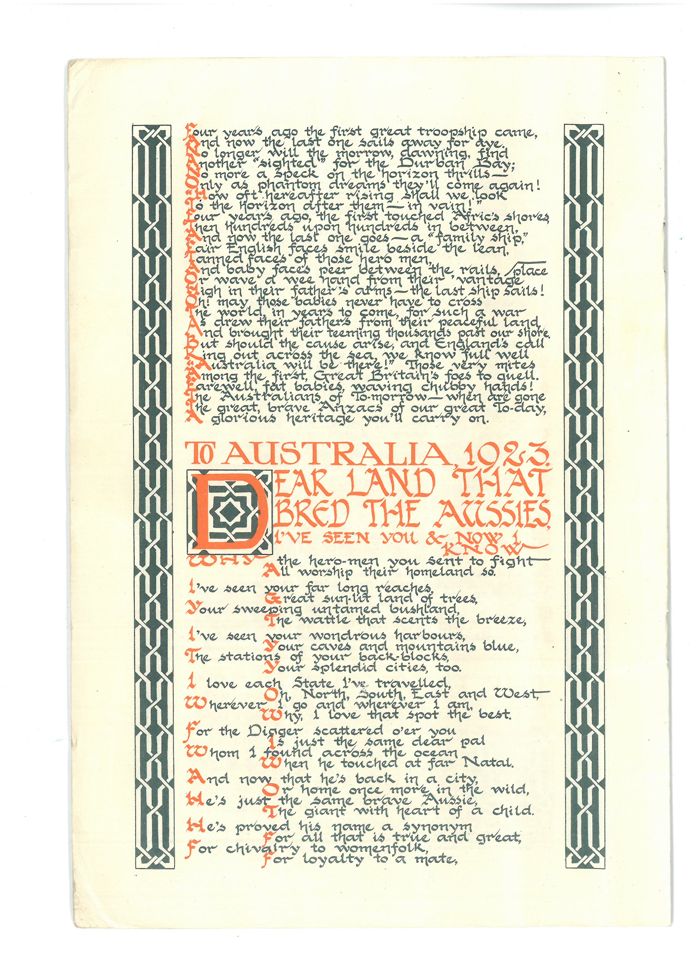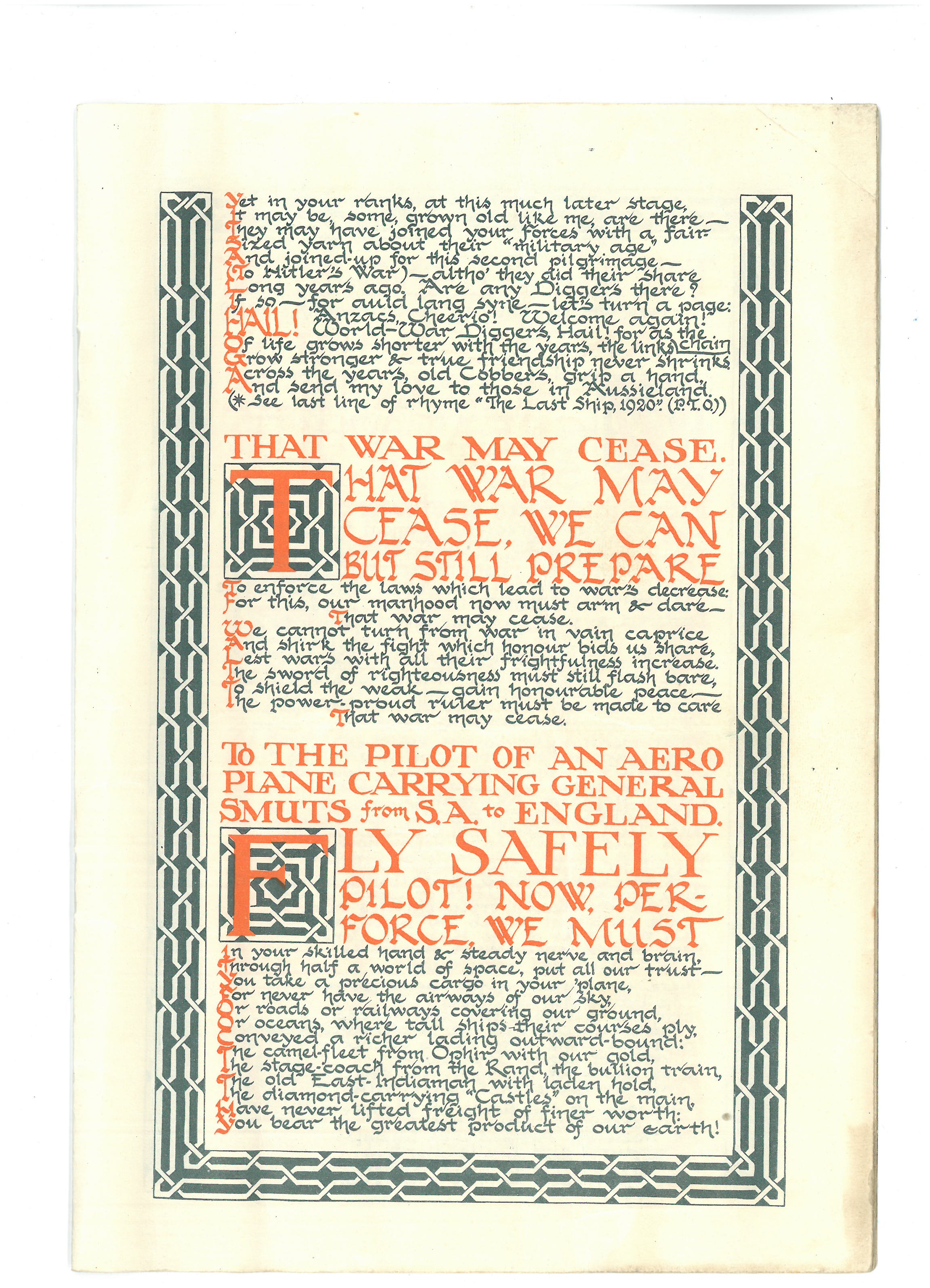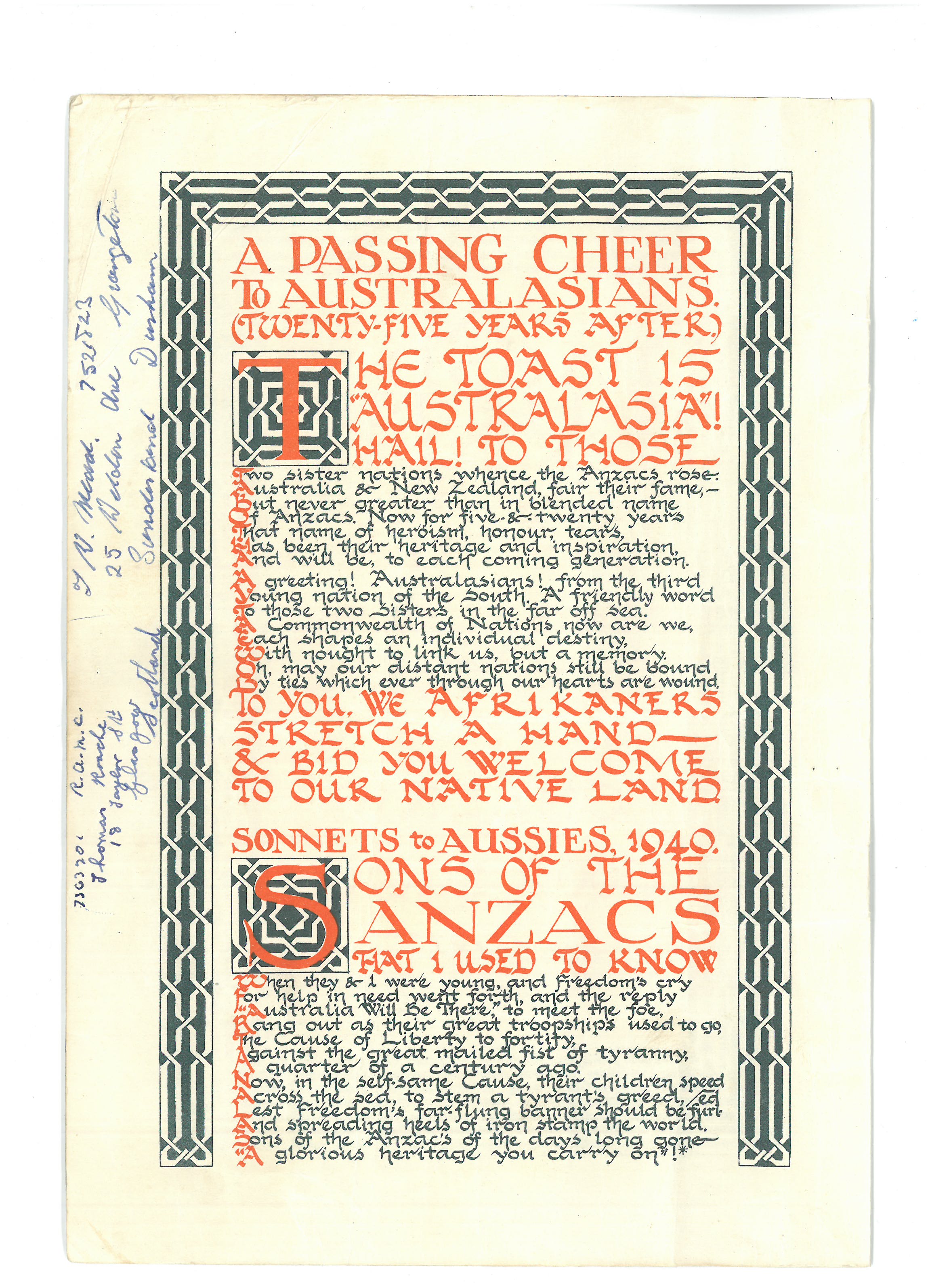 This is the ‘pamphlet’ mentioned in a couple of Dad’s letters. A link to more information about the woman who was known as the Durban signaller was included in my last post. The copy shared here was sent home to Dad’s sister Ivy – on the front page there’s a note from him saying ‘if possible youngster, keep this till I get home’. He posted it to her from Port Suez in march 1941.