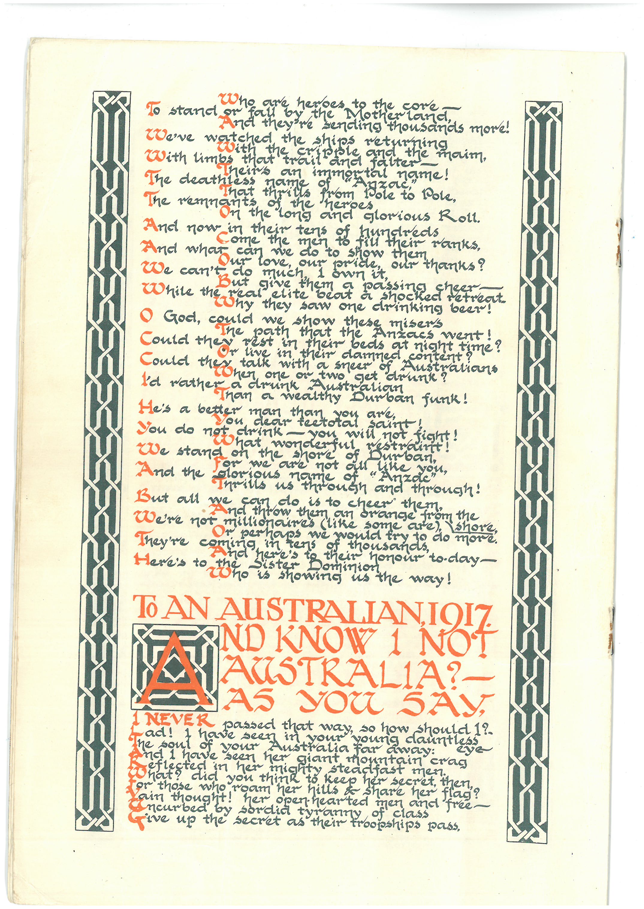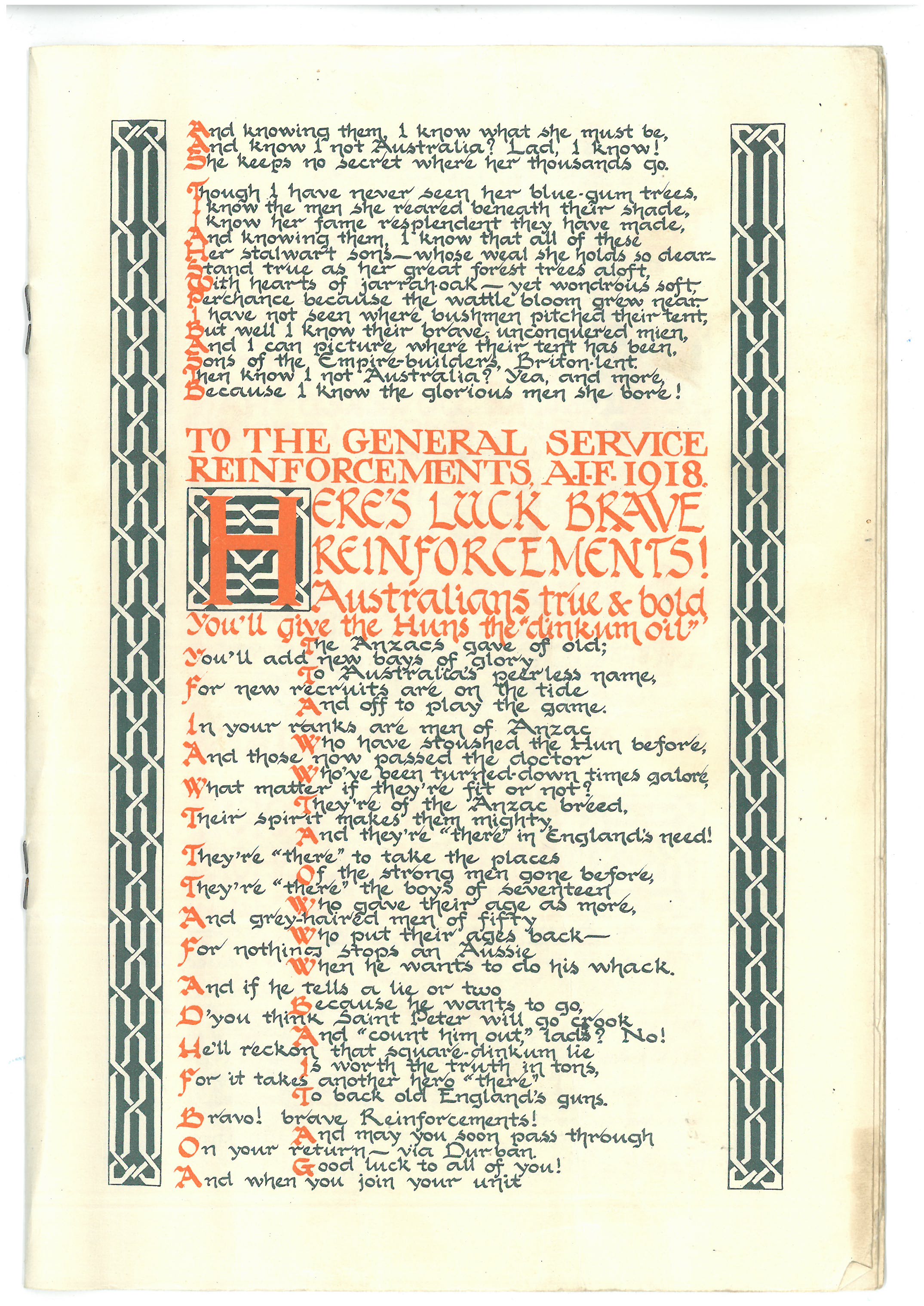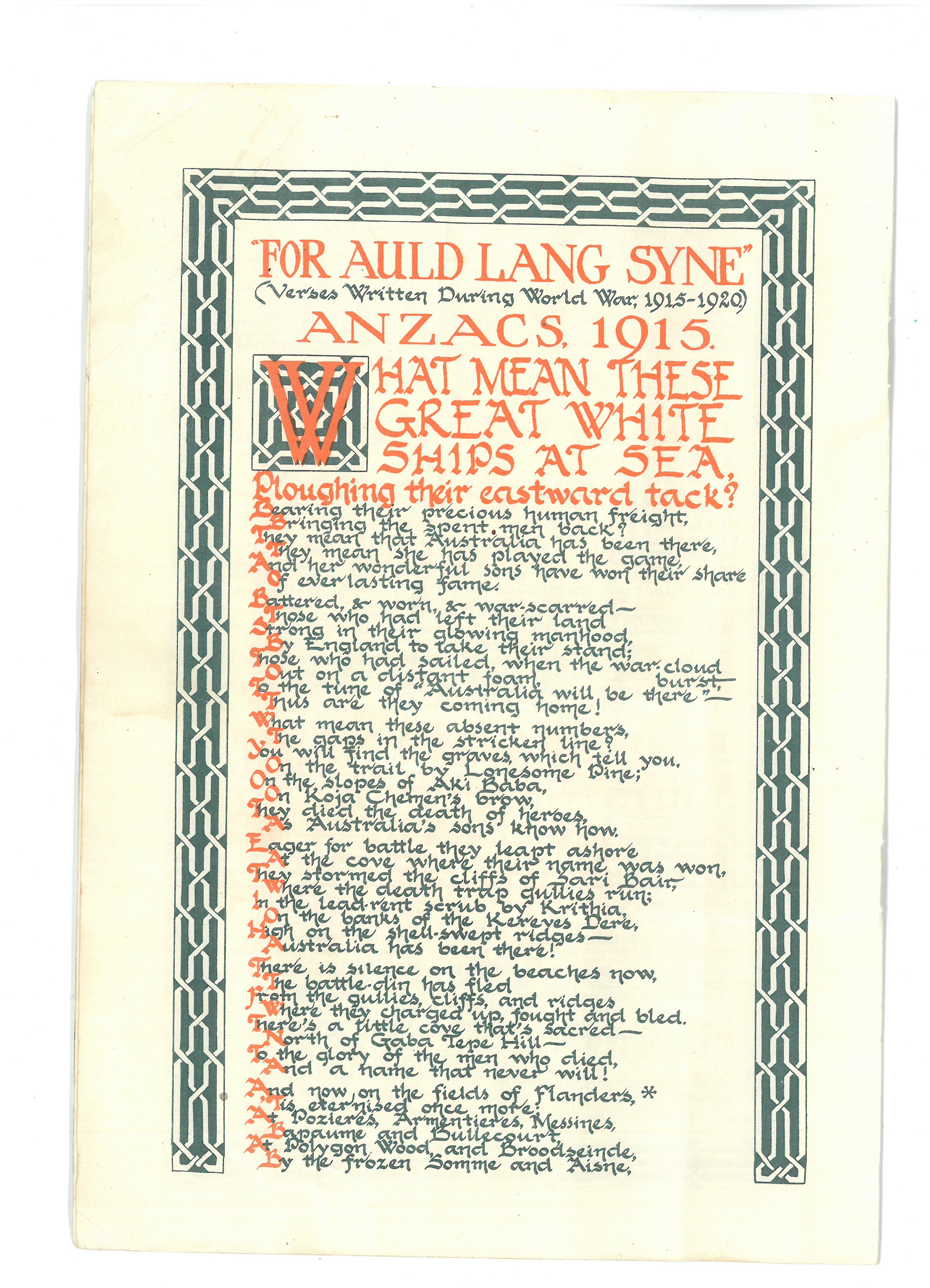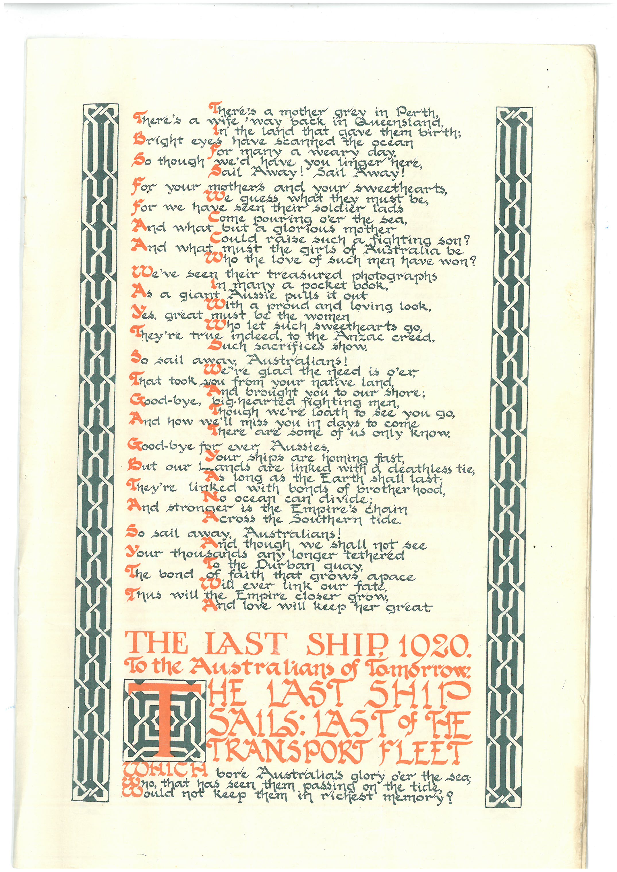This is the ‘pamphlet’ mentioned in a couple of Dad’s letters. A link to more information about the woman who was known as the Durban signaller was included in my last post. The copy shared here was sent home to Dad’s sister Ivy – on the front page there’s a note from him saying ‘if possible youngster, keep this till I get home’. He posted it to her from Port Suez in march 1941.