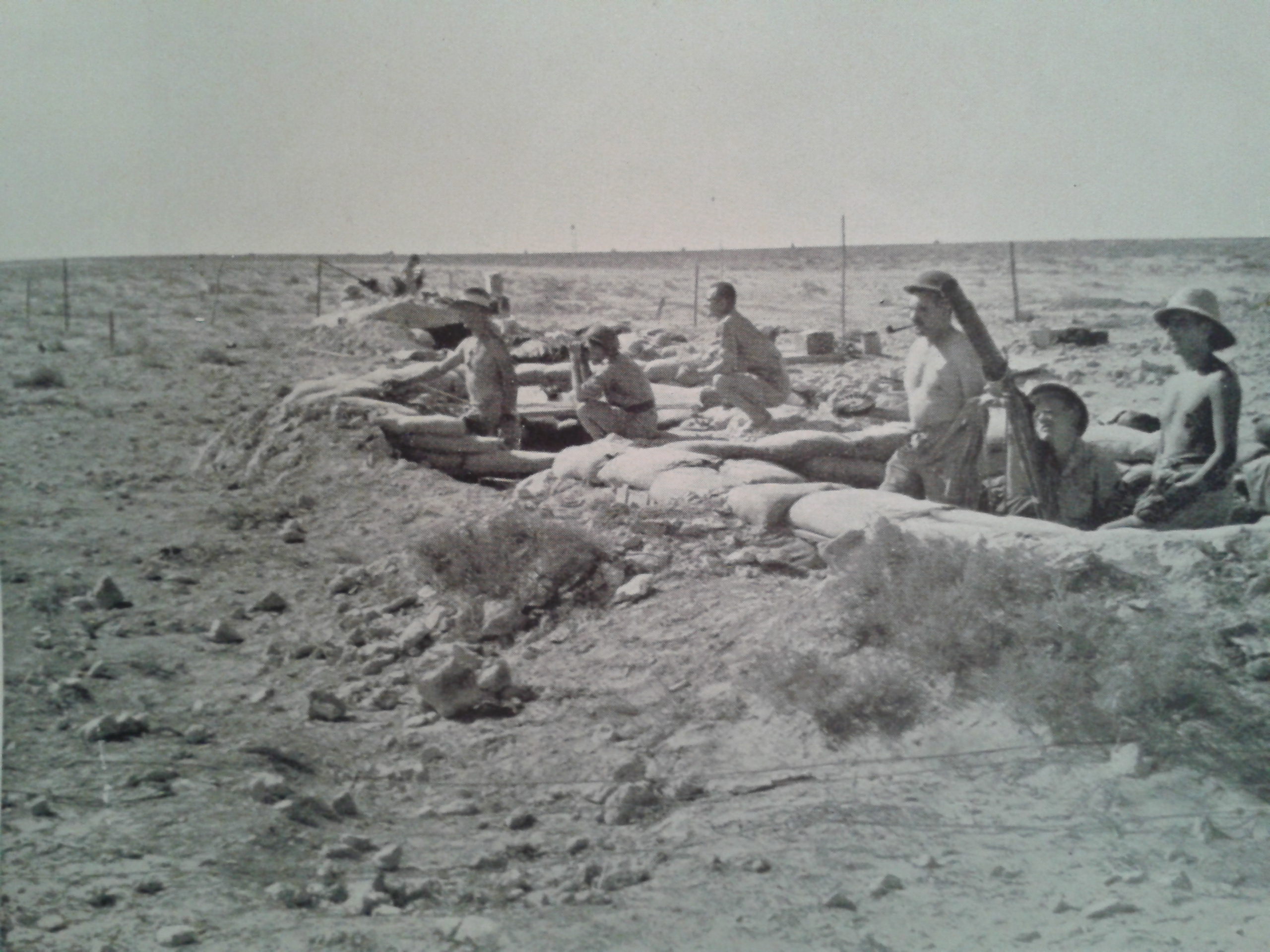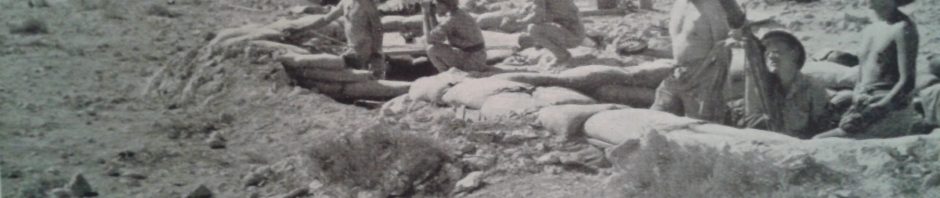 Camouflaged gun pits – dug now – dug out for Bluey Marshall’s section – wrote to Mother and Youngster. R Ross and B Cole get parcels from home – Mick Patton gets a bottle of hair oil and tie pin – Mick has shaved his head – not much chance of lairizing here – hundreds of miles from civilization – got a couple of bottles Youngers Ale from artillery truck – very nice.