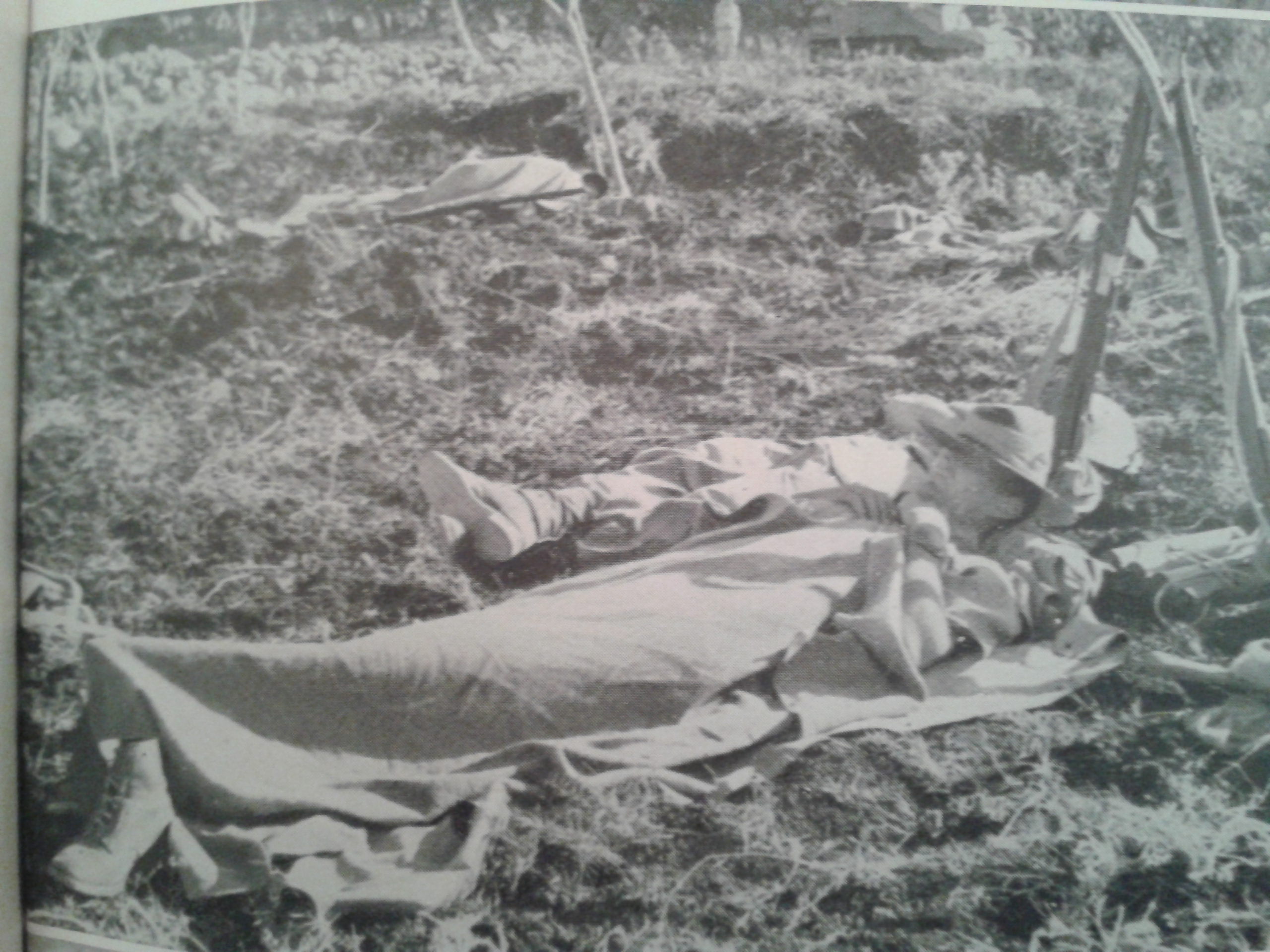 One day the officer in charge came by a quantity of fresh meat, bread and vegetables and of course it became necessary to have a cook and muggins volunteered to do the job and though you of course will find it hard to believe I turned on a really good feed of steak (fried in butter – a rare commodity), onions, potatoes and carrots. The whole platoon were amazed at the meal. Of course I suppose having bully beef and hard biscuits for a week had sharpened their appreciation of fresh food.