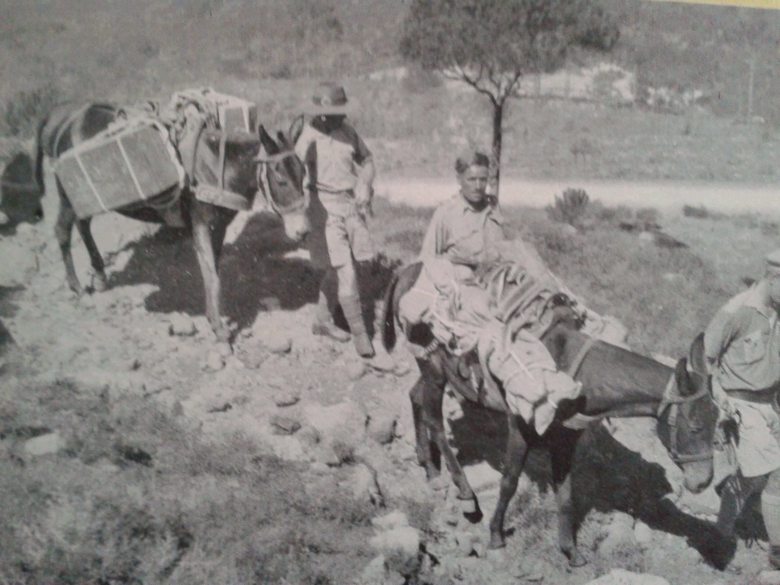 Your letter of the 28th April came up on Tuesday night along with a parcel from Youngster. The circumstances of their arrival were really melodramatic and that made them all the more appreciated. We were near the top of a rugged mountain almost dwarfed by giant boulders when the ration truck with its cargo of bully beef and concrete biscuits arrived and with it the postman. Everyone was amazed when with our box of rations came a bag of mail – mostly papers but very welcome just the same. The cake the youngster had sent for my birthday would have found favour at any time but after living for days on Bully – well it was wonderful, and to the tune of a 1941 dinner music programme we went to work on it. The letter must have been held up somewhere but it made good reading for all that and explained how young Trevor came by his accident.