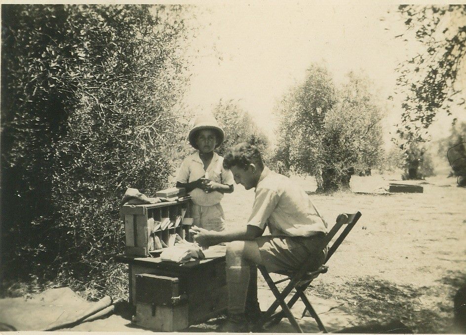 Charlie McGinnes (NX 6513) running one of the ‘Field Post Offices’ in the Middle East – 1941. Photo courtesy of Charlie’s son Peter – via the 2/33 Bn Facebook page.