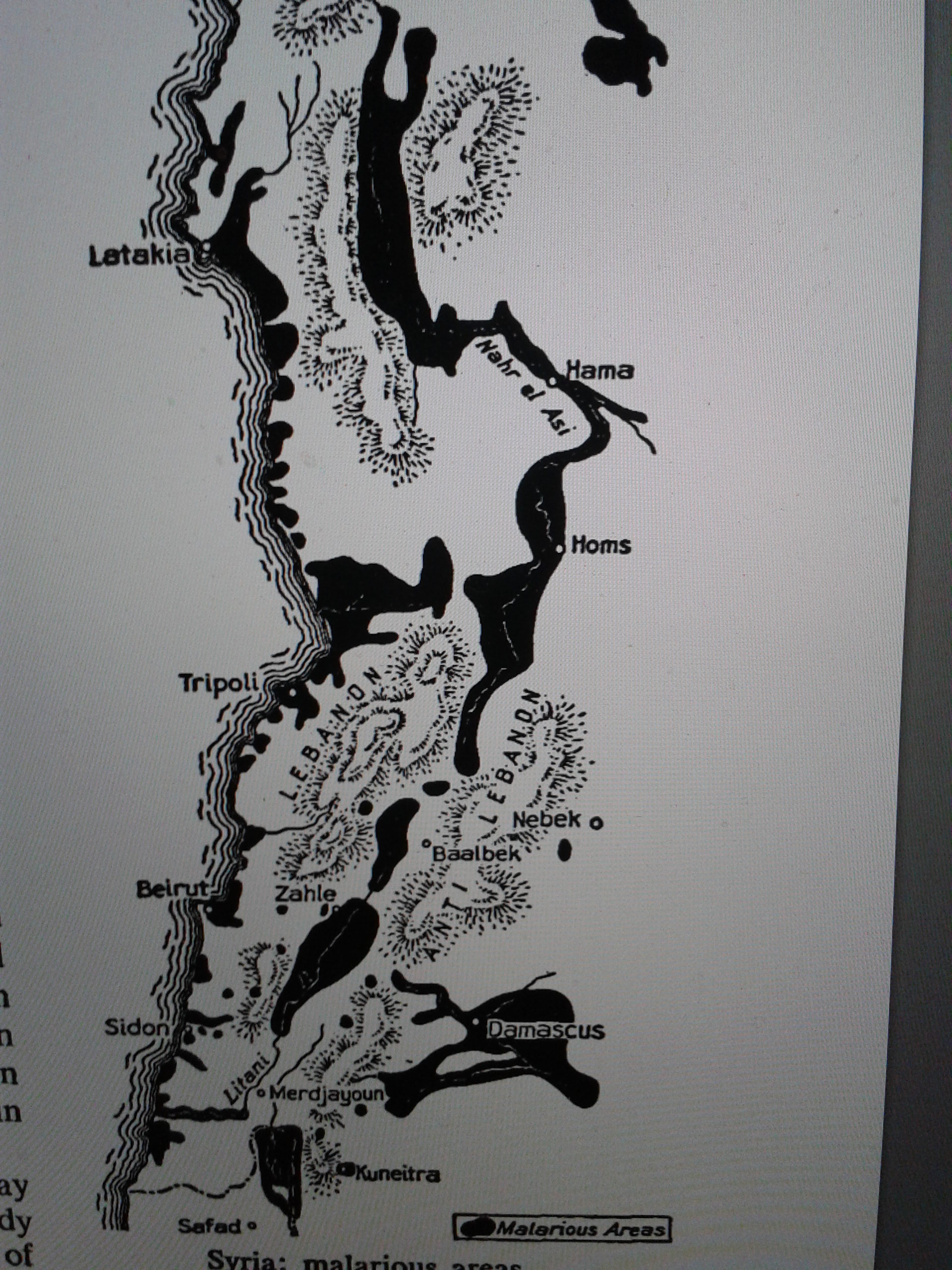 …Malaria was the dominating medical factor. As already pointed out, the medical aspects of the projected campaign were not considered seriously during the early stages of planning, and though experts of the highest calibre were of great assistance later, the most essential links of the chain were defective. These were the unfailing provision to the troops of the necessary wherewithal for protection , and its unfailing use by them….Sometimes material was available, and not faithfully used. Sometimes the commanders wished to enforce its use but had no material…..The 25th Brigade was exposed to risk of infection at Merdjayoun, and the fruits of this exposure were evident later after the fighting was over when 300 men contracted malaria….nevertheless…there is no doubt that a definite degree of success attended anti-malarial work during June and July in Syria; it was during the later periods that the full significance of the sins of omission were realised.