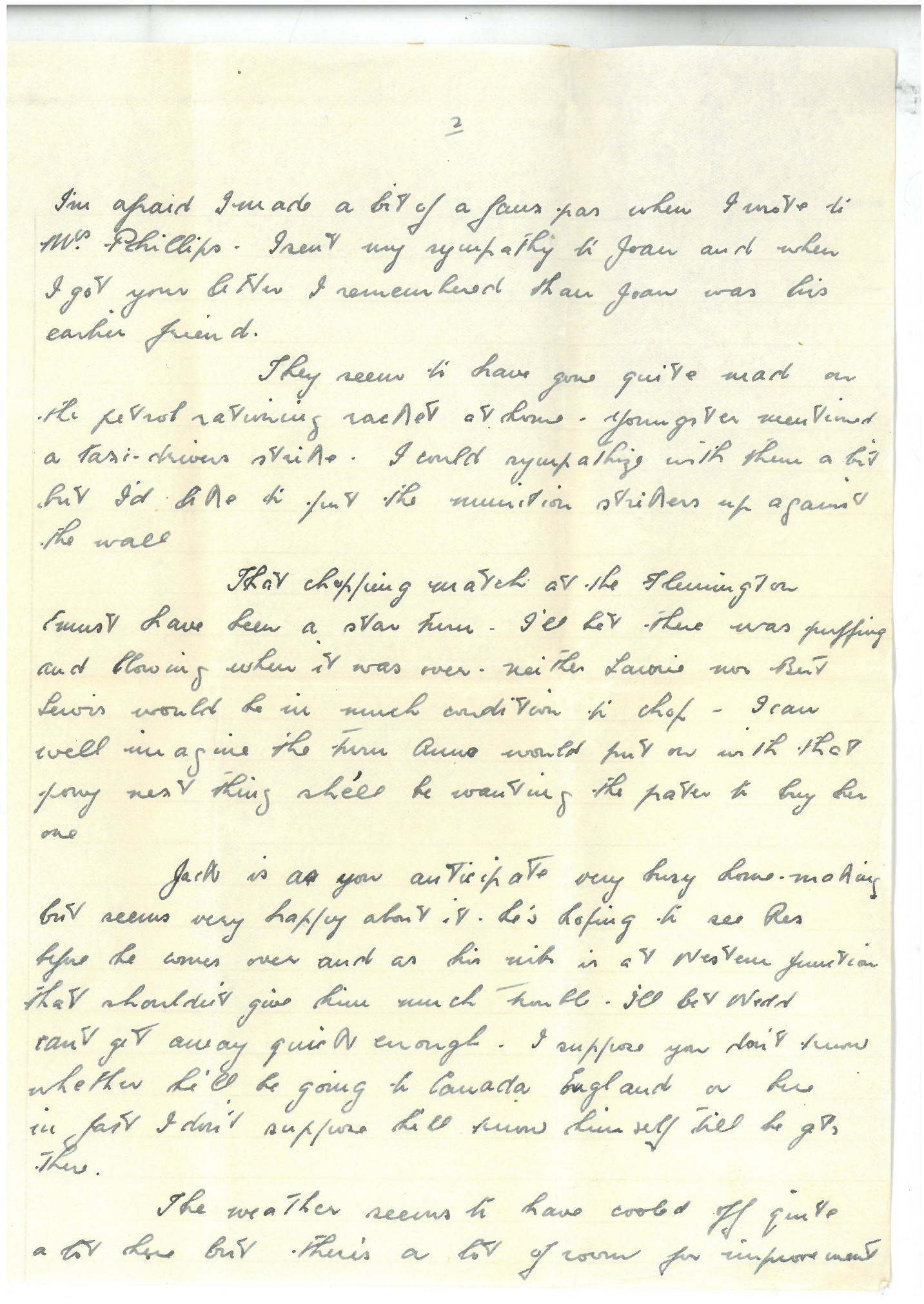 Jack is as you anticipate very busy home-making but seems very happy about it . He’s hoping to see Rex before he comes over and as his nibs is at Western Junction that shouldn’t give him much trouble. I’ll bet Wedd can’t get away quick enough. I suppose you don’t know whether he’ll be going to Canada, England or here – in fact I don’t suppose he’ll know himself till he gets there.