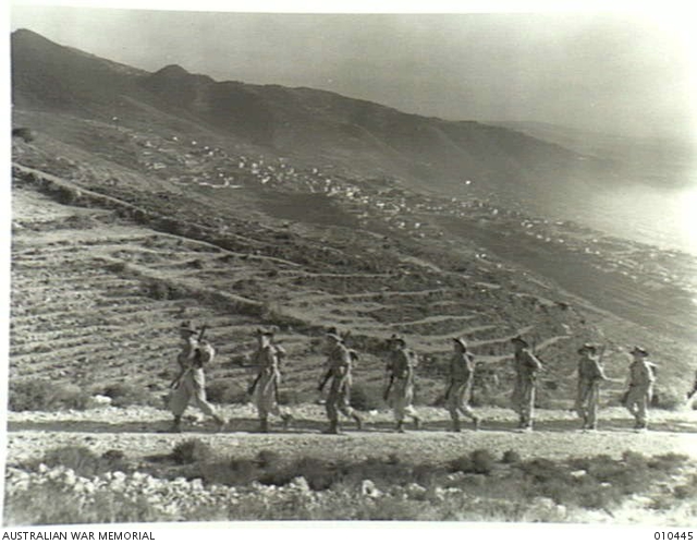 Shows men of the 2/25 Bn on manoeuvres in Lebanon: presumably the 2/33Bn route marches were in similar territory. (Both Bn’s were part of the 25th Brigade)