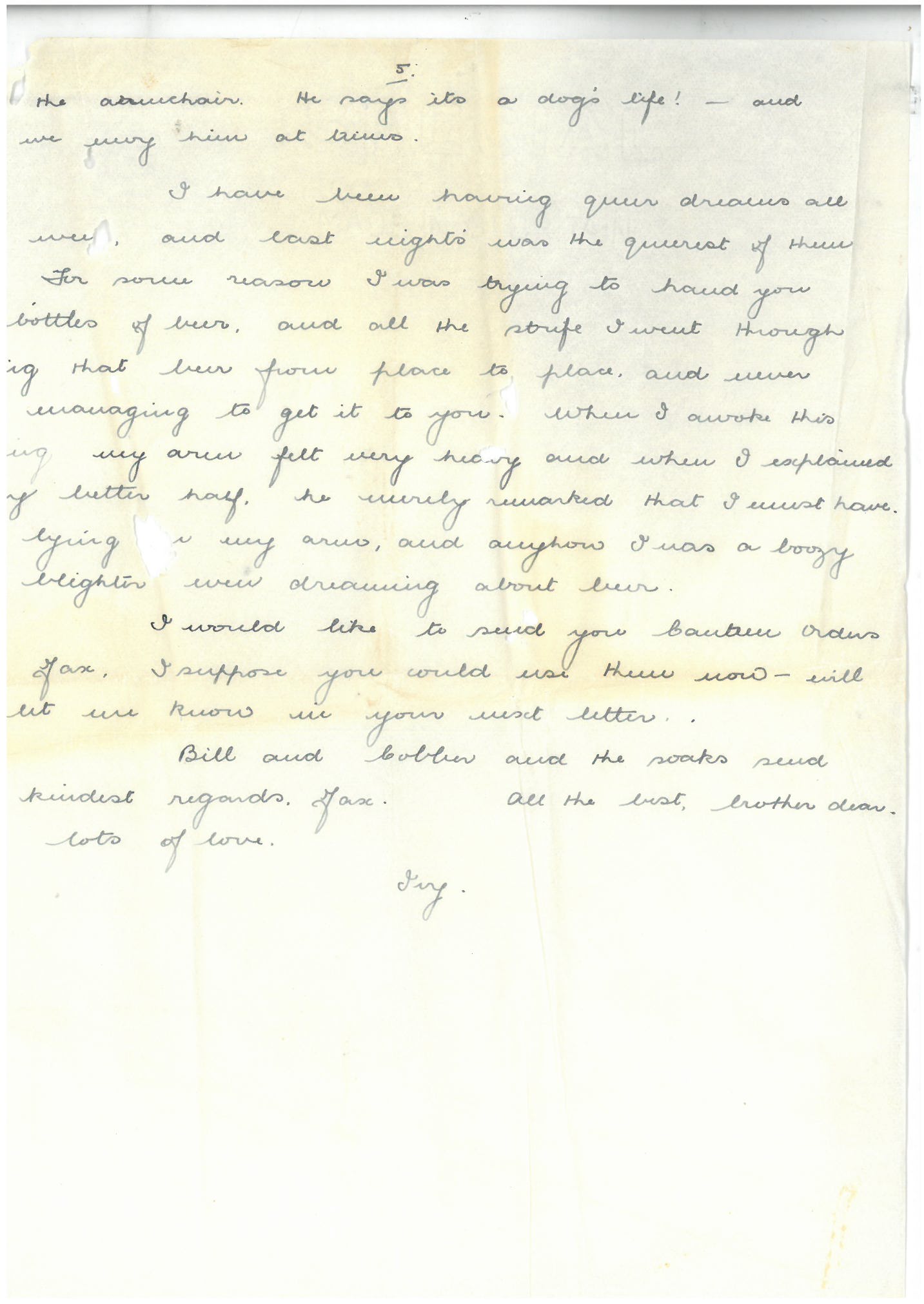 Bill and Cobber and the soaks and their kindest regards Max. All the best, brother dear and lots of love.