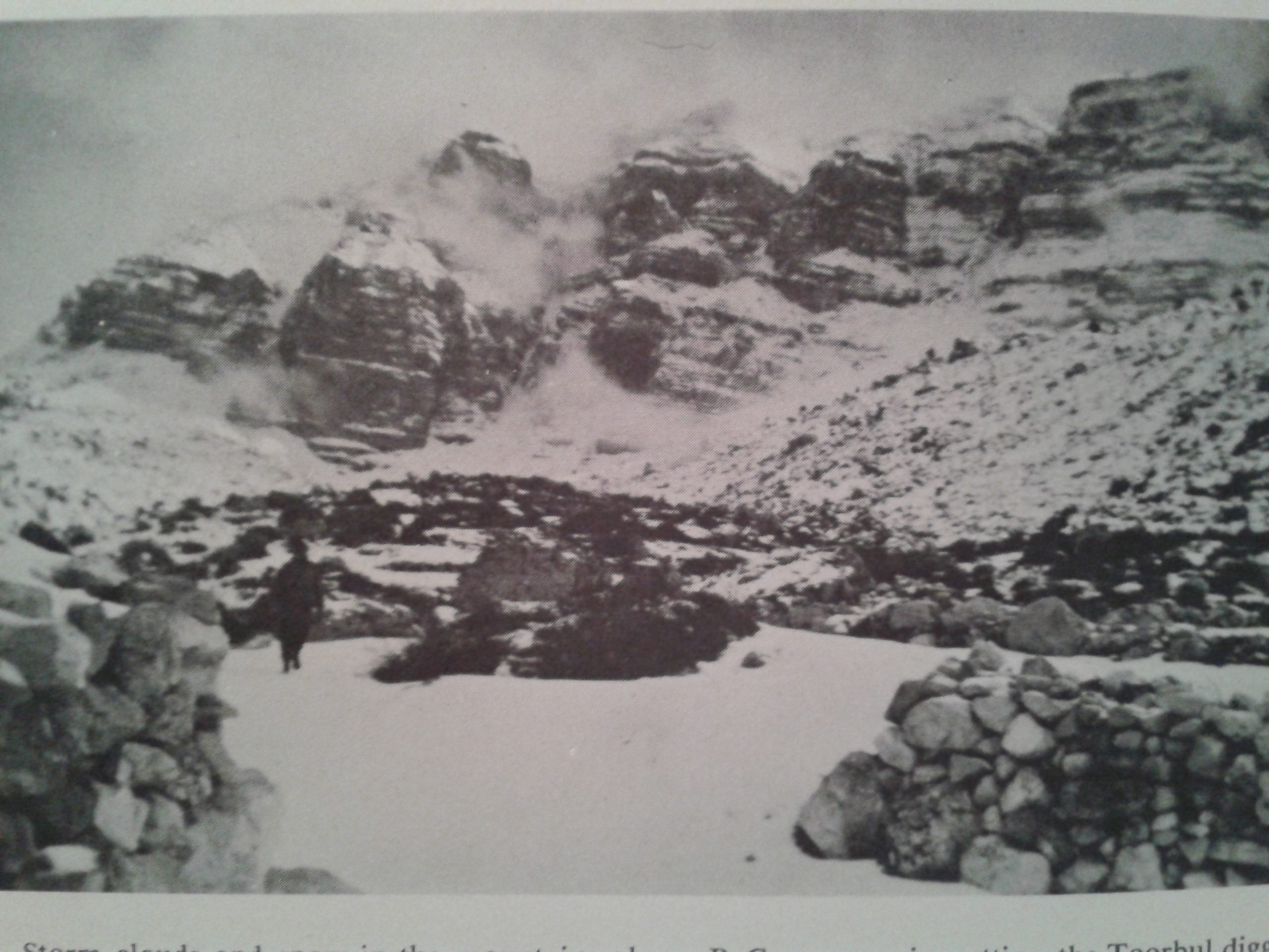 From The Footsoldiers : Storm clouds and snow in the mountains above B company picketing the Tourbel diggings. There is no indication of whether the troops in the mountains were sleeping in ‘dugouts’, tents or huts…AWM photos indicate that other groups were constructing ‘winter quarters’ such as these: