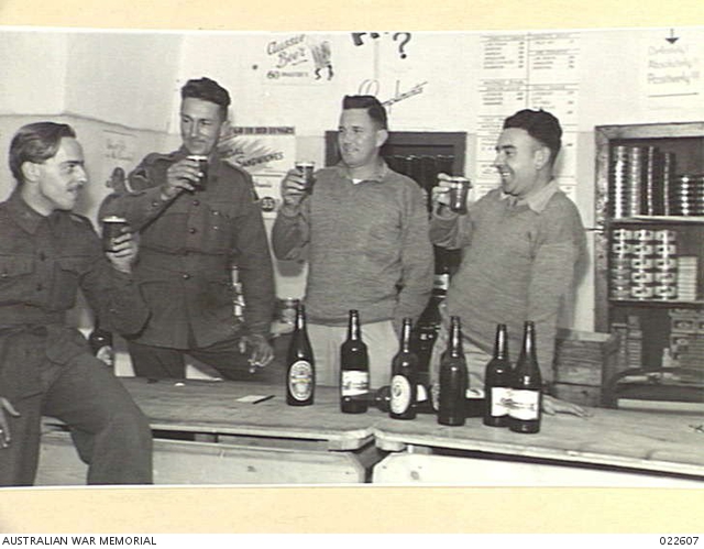 I got quite a pleasant surprise yesterday when the platoon sergeant told me I could have leave from half past three till ten o’clock – the first I’ve had for a long time. The only times I’ve been out of barracks except for the brigade sports have been on duty and it was a break to get away for a few hours. Bill Collis – the ‘Albury Basher’ also got leave so we went together, had a few pots of Aussie beer at the canteen a good feed of steak & eggs and went to the pictures (half past six till eight o’clock) then we went back to the canteen had a few more beers and a chicken supper. It may not sound very exciting but it was a pleasant evening. There are few pubs in Tassie that I’d rather own than that little canteen – it’s an absolute goldmine – all bottled stuff but as they only sell by the glass they catch the coin. It’s one place you’re sure of meeting someone you know and I struck Saxe Coverdale and a couple of chaps from the twelfth – had quite a good yarn to them. They were from Launceston and although I didn’t know them there’s always a bond of friendship with chaps from the same state. They told me that young Pat Rafferty is their OC of Headquarters Company – he must be doing pretty well.