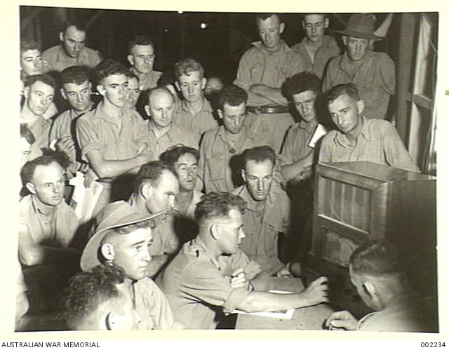 In a Salvation Army hut in Palestine AWM 002234 – The broadcasts would have been censored, so most likely the sentiments expressed in the article below were not heard directly – the troops would have had to wait for (old) newspapers to be delivered, to learn of such views.