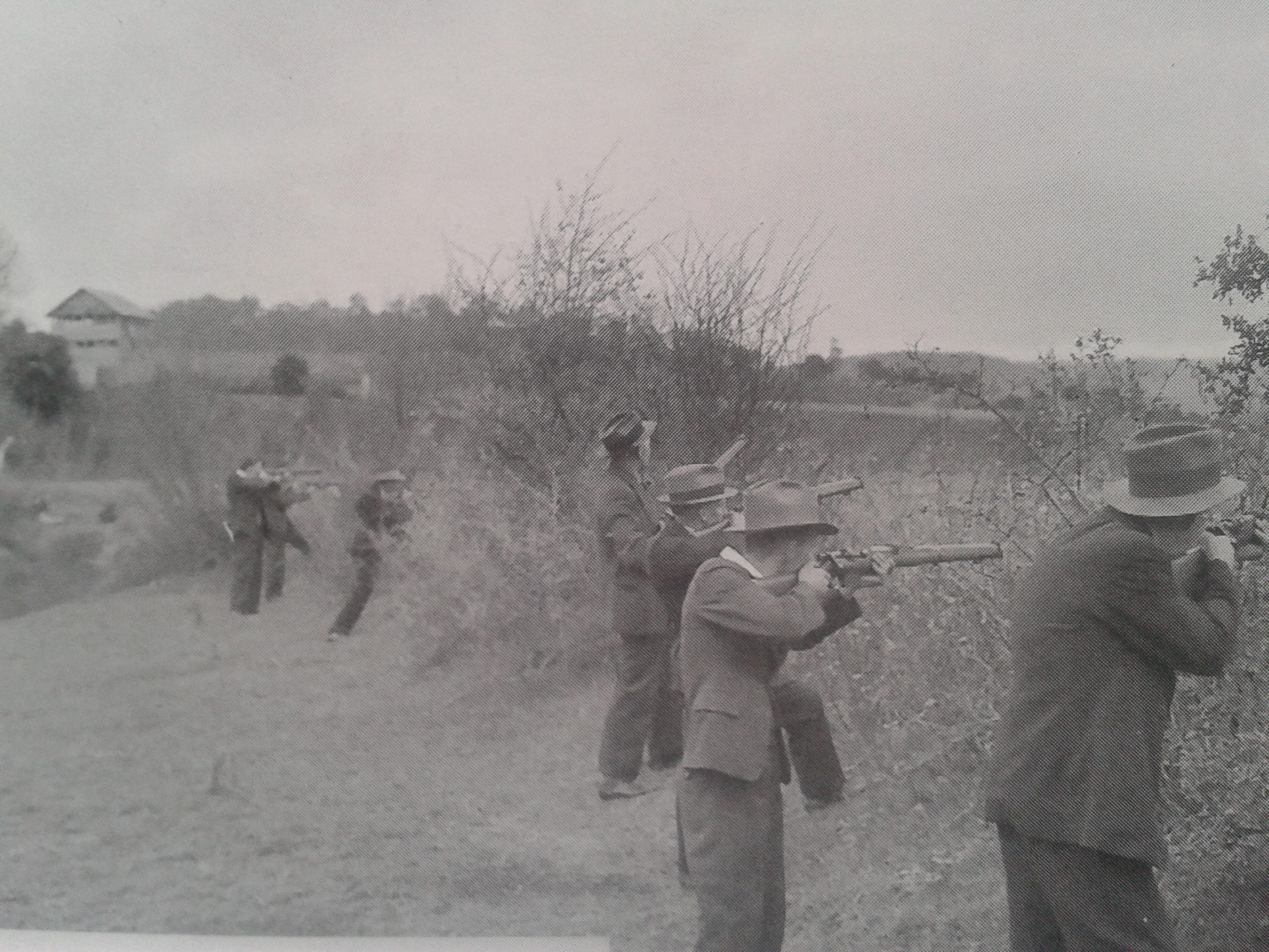 Men who were either too old or medically unfit for active service, and were not employed in specified occupations were encouraged to join the Volunteer Defence Corps. These photos of VDC training exercises come from CJ Dennison’s book Hobart at War 1939 to 1945 – Photographs from the archives of The Mercury.