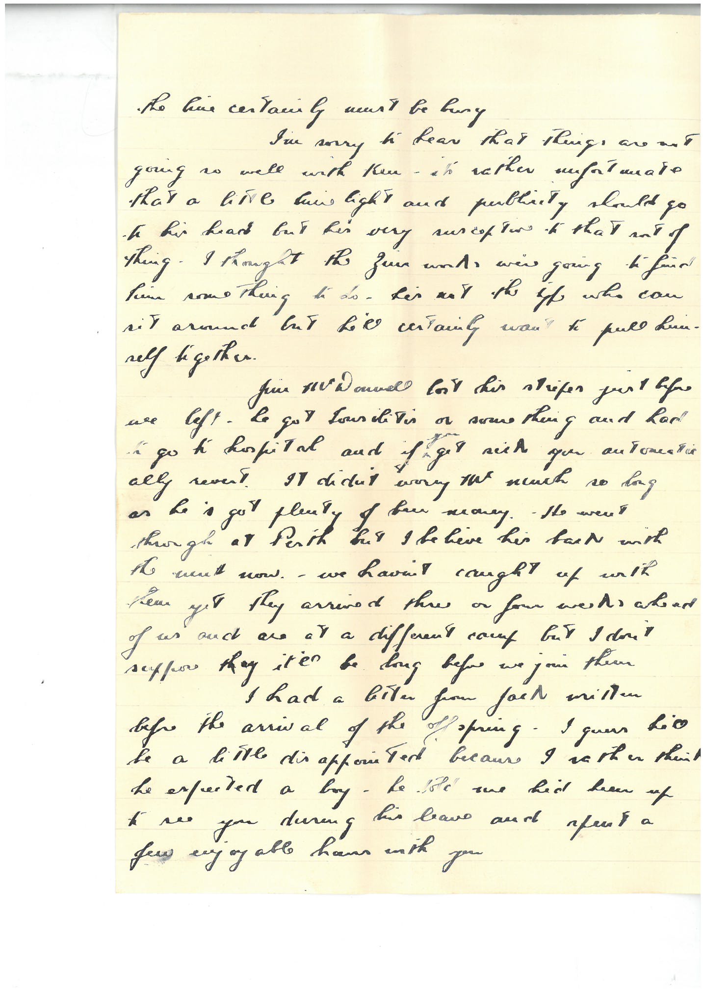 I had a letter from Jack written before the arrival of the offspring. I guess he’ll be a little disappointed because I rather think he expected a boy. He told me he’d been up to see you during his leave and spent a few enjoyable hours with you.