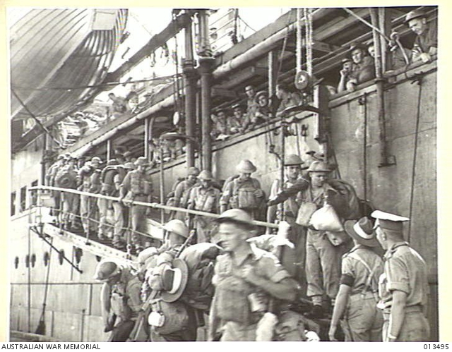 AWM 013495 – reinforcements arriving in Moresby Nov 42 – these may or may not have been those referred to above. It is also possible they were a contingent about to be flown to the front line at Buna.