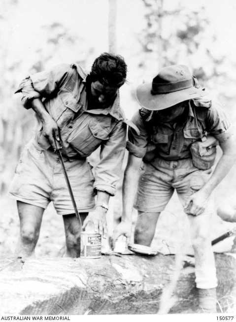 AWM 150577 – September 1942 -troops on manoeuvres near Darwin opening a tin of Jones & Co jam