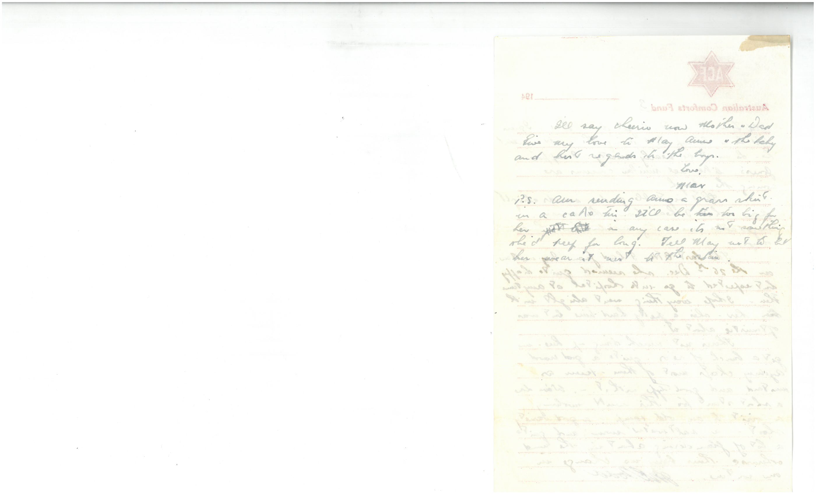 I’ll say cheerio now Mother & Dad. Give my love to May, Anne & the baby and best regards to the boys.
