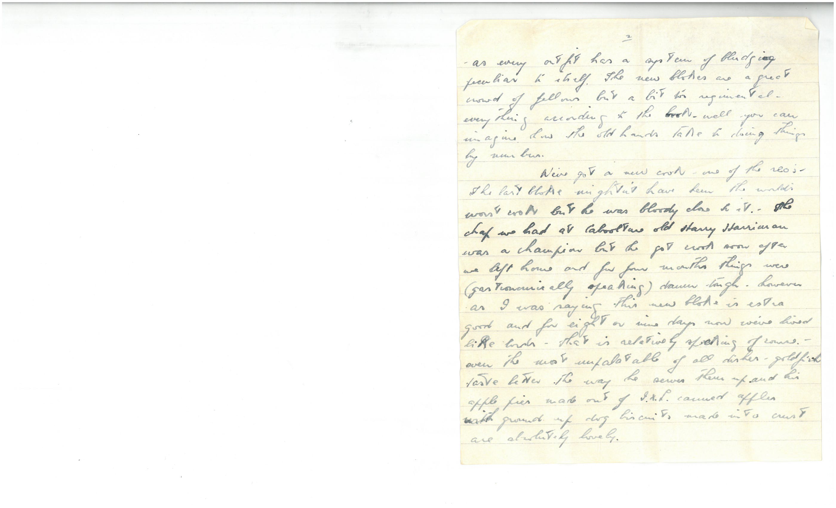 We’ve got a new cook – one of the reo’s. The last bloke mightn’t have been the world’s worst cook but he was bloody close to it. The chap we had at Caboolture old Harry Harriman was a champion but he got crook soon after we left home and for four months things were (gastronomically speaking) damn tough – however as I was saying this new bloke is extra good and for eight or nine days now we’ve lived like lords – that is relatively speaking of course – even the most unpalatable of all dishes – gold fish – taste better the way he serves them up and his apple pies made out of IXL canned apples with ground up dog biscuits made into crust are absolutely lovely.