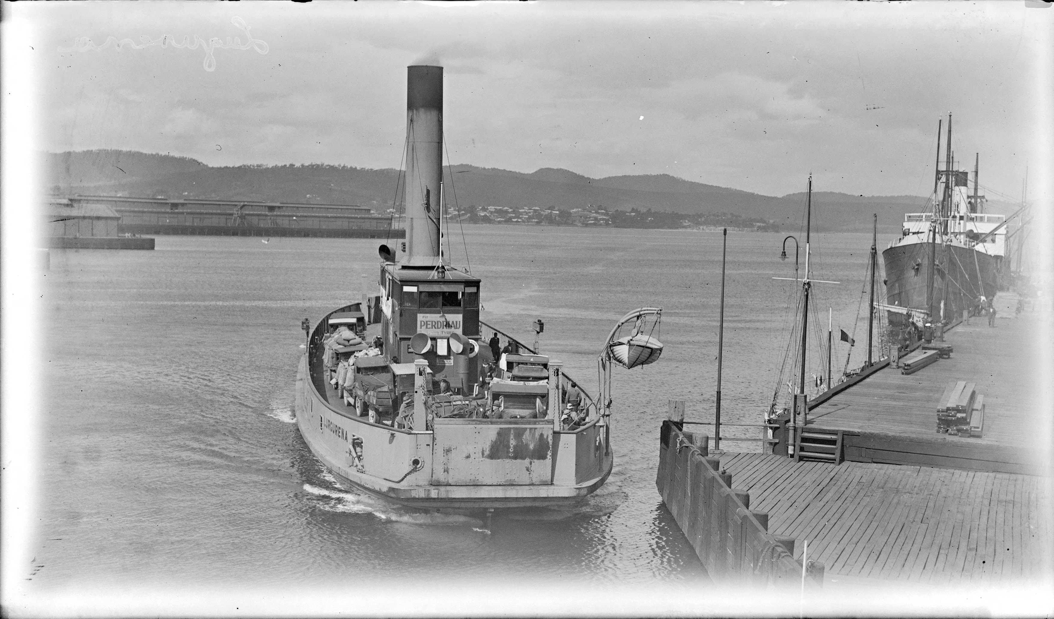 The car ferry Lurgurena on which Ted Elliott was travelling when he collapsed. Photo from the Tasmanian Archives’ Mercury Historical Collection.