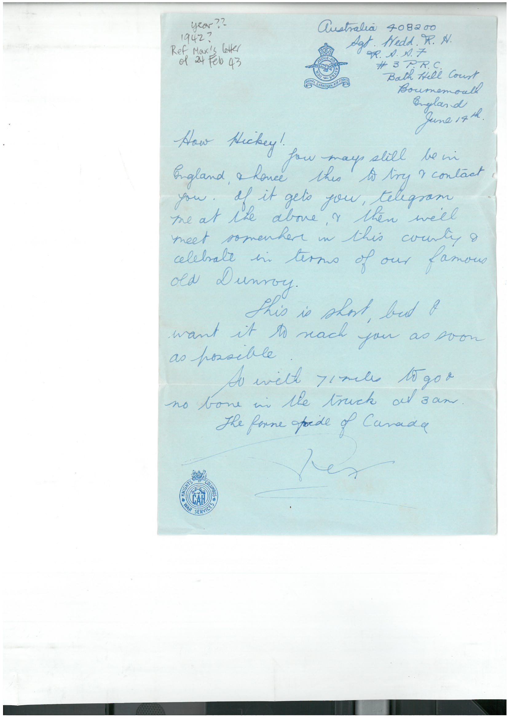 Rex had enlisted in March 1941 and after basic training in Tasmania had travelled to Canada for advanced training, under the Empire Air Training Scheme. (https://www.awm.gov.au/encyclopedia/raaf/eats/)