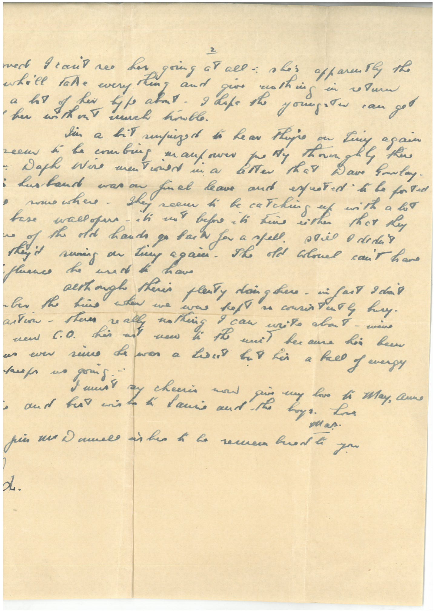 I must say cheerio now. Give my love to May, Anne & Carline and best wishes to Laurie and the boys. Love – Max
