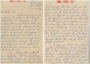 Well I must say cheerio now Mother and Dad. Give my regards to Tom and the family and my love to May, Anne & Carline. Tell the boys I can sympathise with them on the ration shortage and hope things get better soon. It’s a pity you didn’t have someone working int he cookhouse at Brighton – they wouldn’t go short then. All the best.