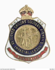 In June 1916, a conference of state-based returned soldiers associations recommended the formation of The Returned Sailors and Soldiers Imperial League of Australia (RSSILA). The RSSILA was founded by returning soldiers from the First World War with the aim of continuing to provide the camaraderie, concern, and mateship shown among Australian troops while they were at war. During the Second World War, the League changed its name to the Returned Sailors Soldiers and Airman’s Imperial League of Australia (RSSAILA). Initially only the wording on the badge was changed, with a third figure representing an airman added later. (https://www.awm.gov.au/blog/2016/06/16/100-years-rsl-history-badges/)