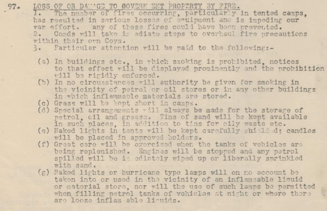 I assume the fire in this case was lit for the purpose of boiling the water for washing… But the CO’s routine orders of 18 August (GRO 586/43) indicate that there were many others being lit or started by accident –