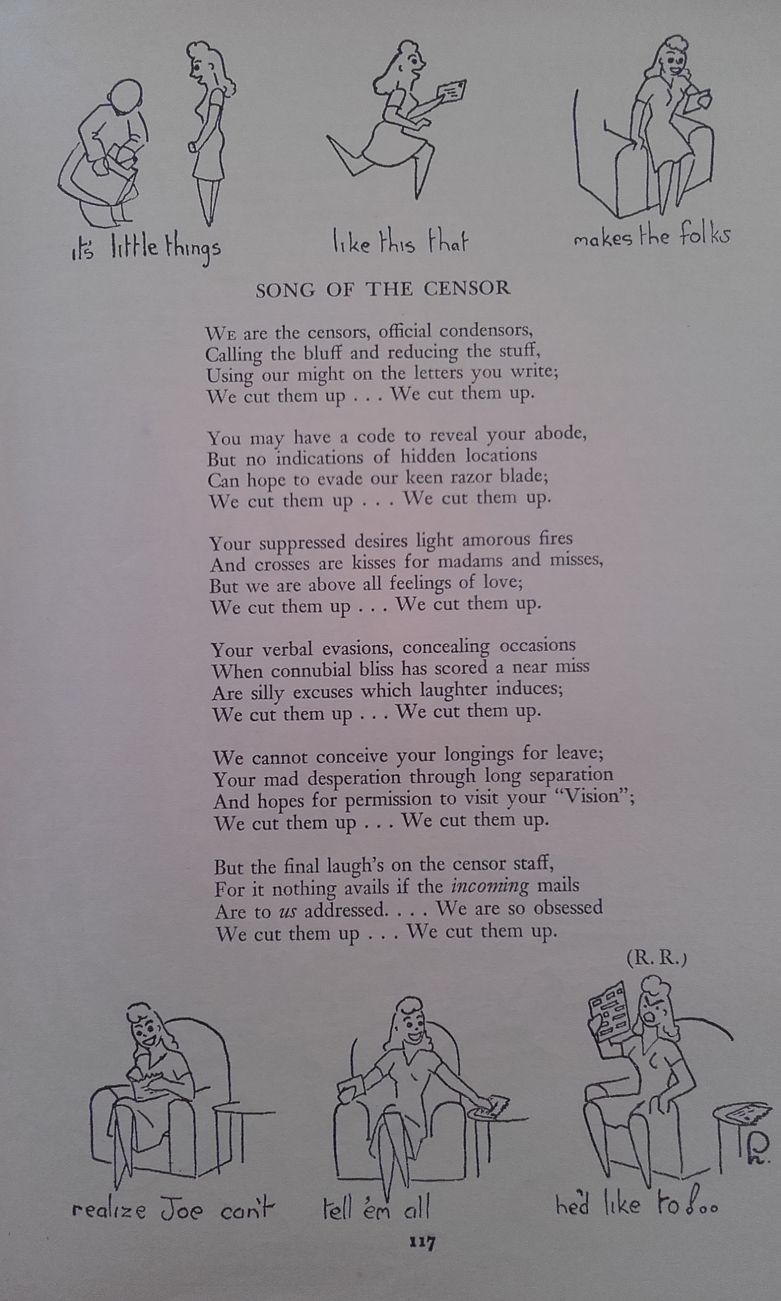 Song of the Censor : We Cut Them Up!! – from Khaki and Green (AWM Christmas Book, 1943)
