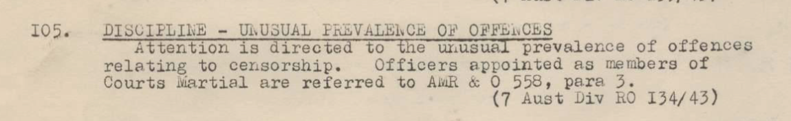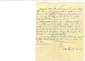 I must have incurred the censor’s displeasure in a big way because Marie and Mrs Toomey’s letters were chopped as well as my letter home – a bad job that, still it won’t do any good going crook because they’ve got the whip hand and I suppose they know their work. Anyhow as they say in the army ‘bother the censor’ or words to that effect.