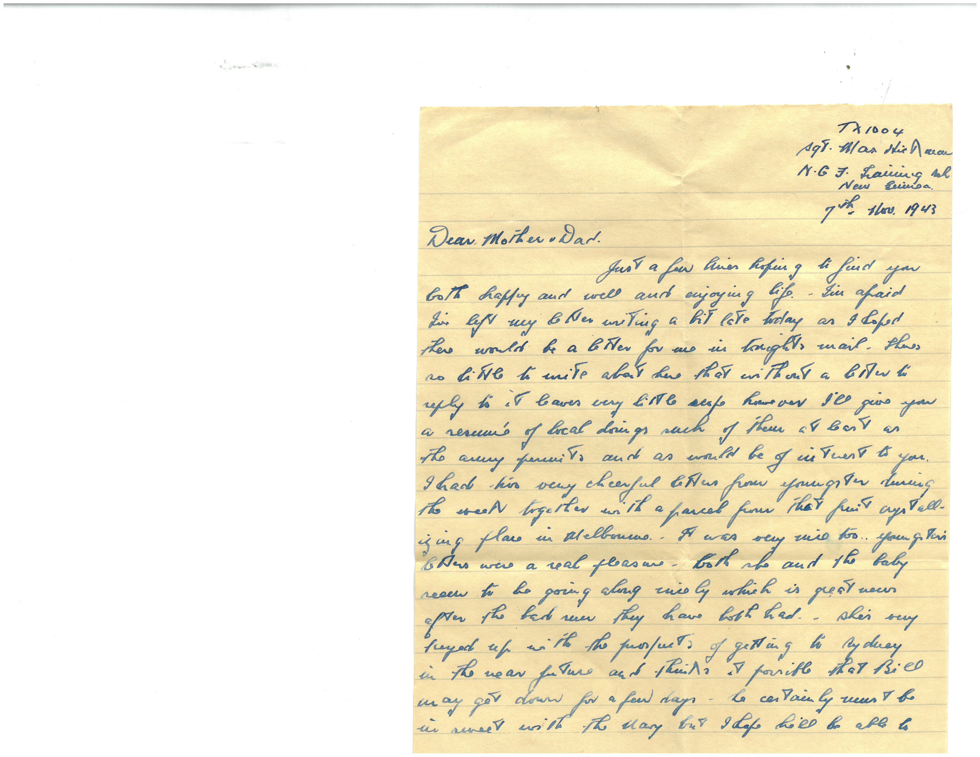 And now Mother & Dad I guess I’ve about said my piece so will say cheerio. Give my love to May, Anne & Carline and regards to the boys.