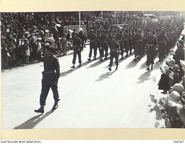AWM 068367 : Men of the 2/33rd passing the saluting base.