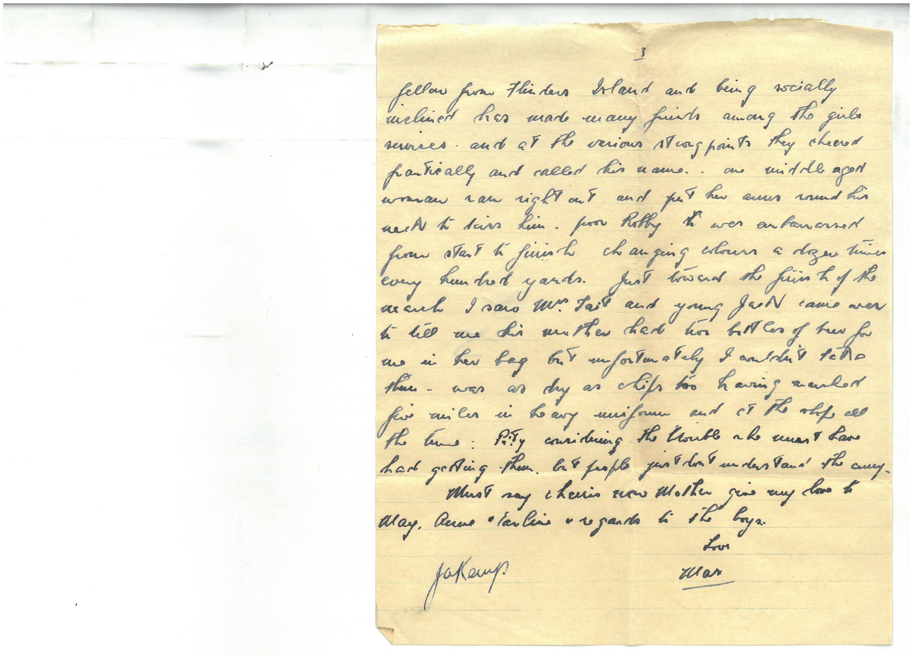 Must say cheerio now Mother. Give my love to May, Anne & Carline & regards to the boys.