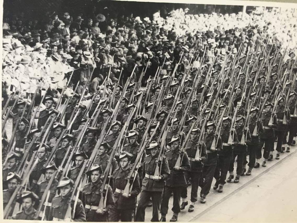 According to The Footsoldiers (p 377) ‘There were ten days of newspaper publicity relating to the 7th Division’s activities in England, Syria, Papua and Lae-Ramu and many references to the ‘Silent Seventh’… The enthusiastic crowds made it a never-to-be-forgotten moment. Never before and an entire division with all its staff and support troops marched in a city in Australia…’
