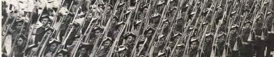 Men of the 7th Division engineers (source unknown). I’ve included this one because the rifles look so dramatic- demonstrating the meaning of ‘at the slope’ – and it gives a good idea of the crowd.